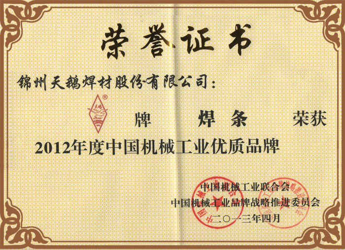 中國機械工業(yè)優(yōu)質(zhì)品牌證書