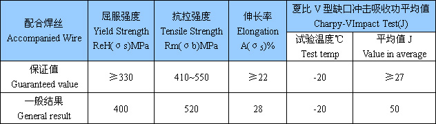 熔敷金屬力學(xué)性能:(按GB/T5293配合JH-SJ501)
