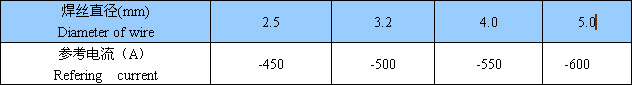焊絲規(guī)格及參考電流:(AC或DC±)