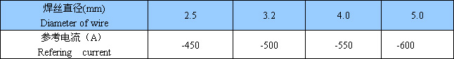 焊絲規(guī)格及參考電流:(AC或DC±)